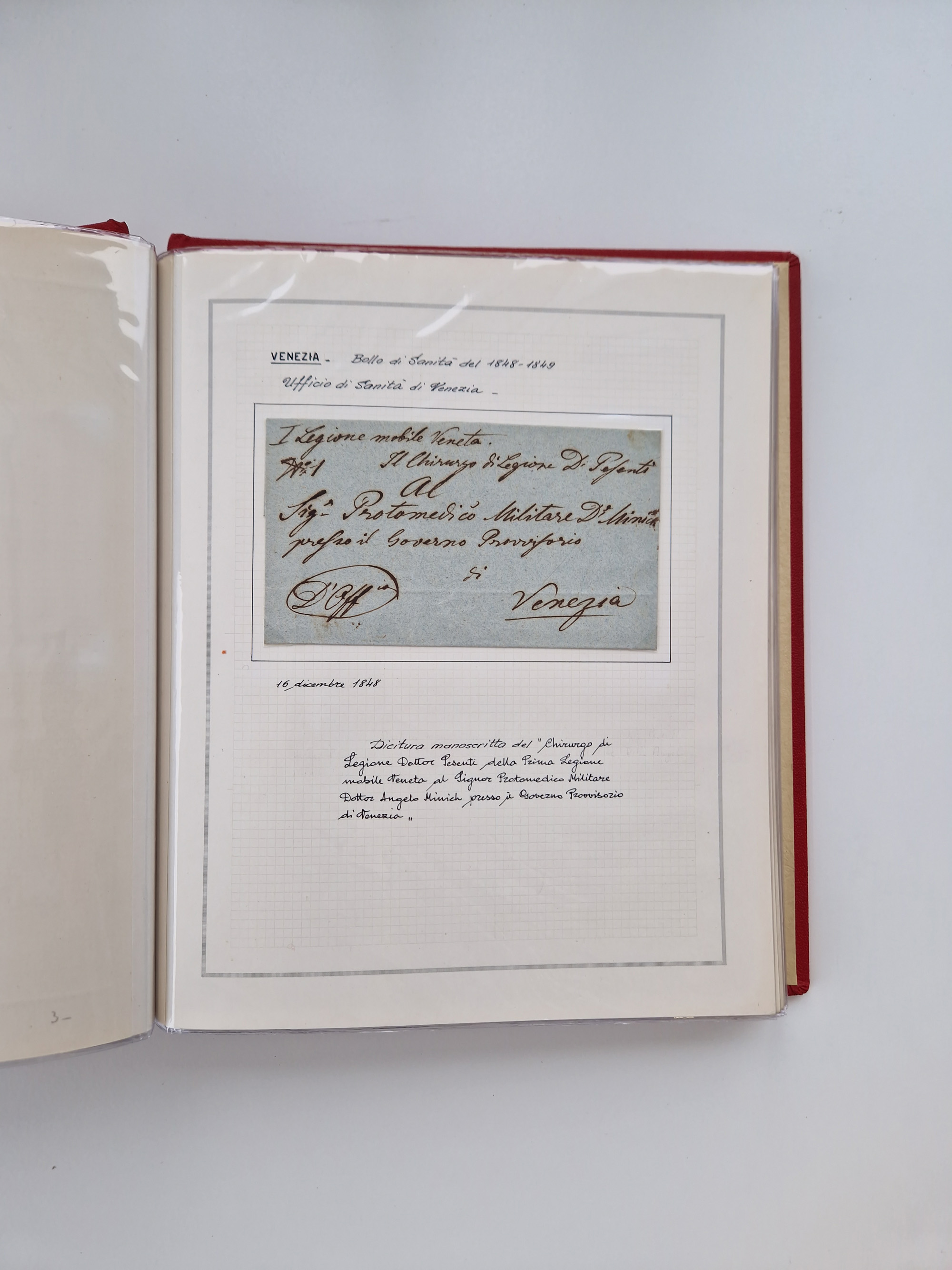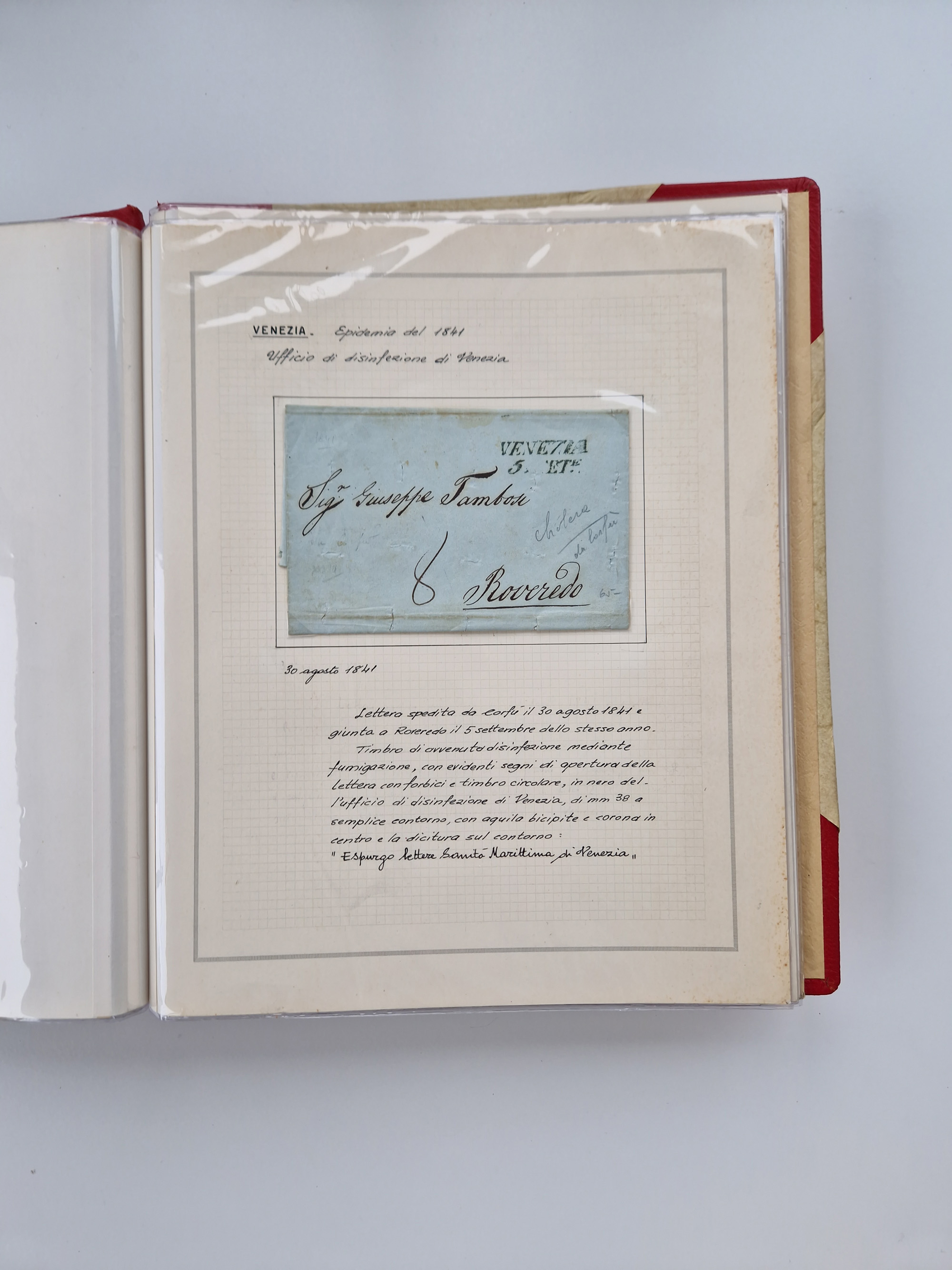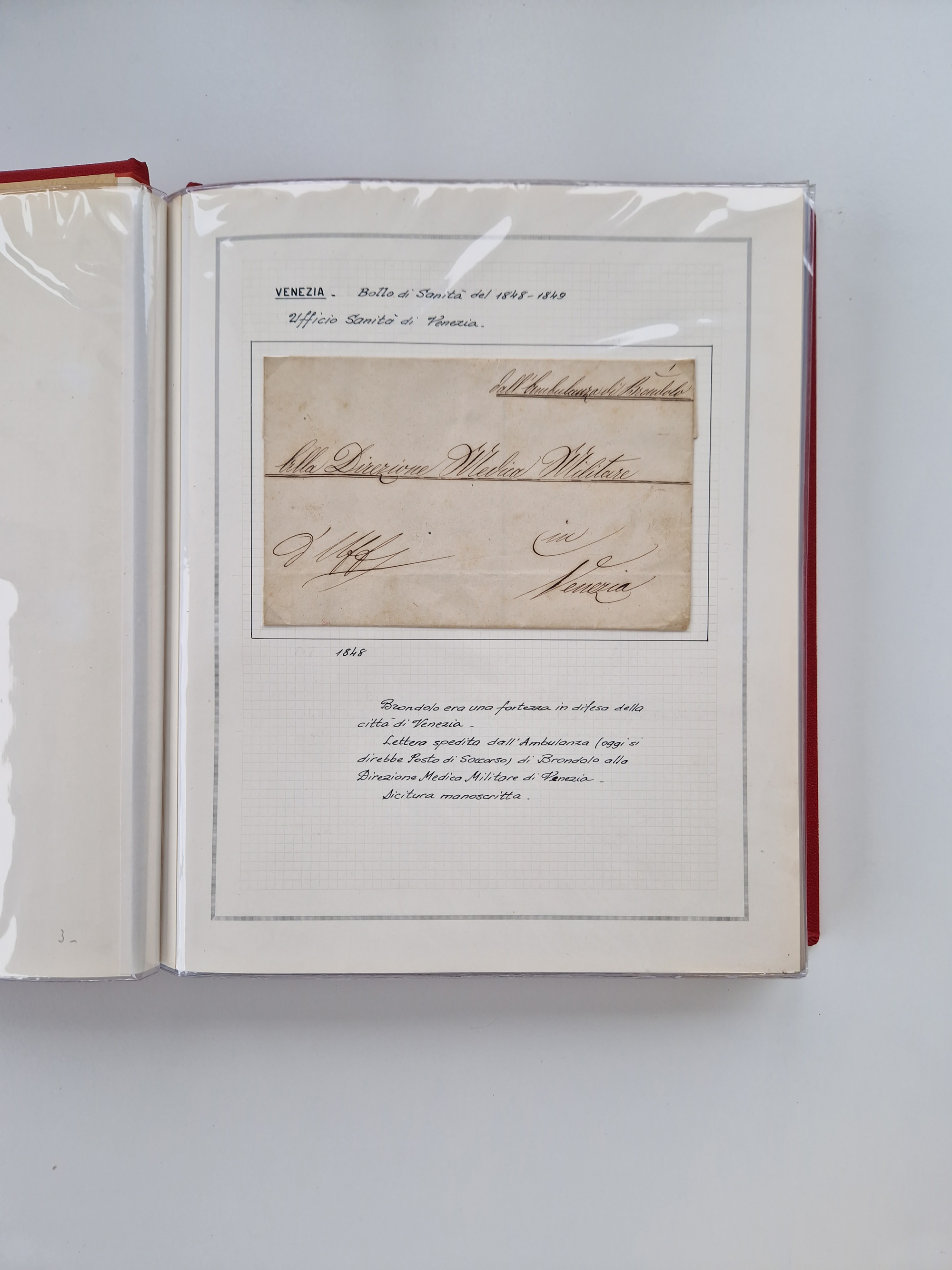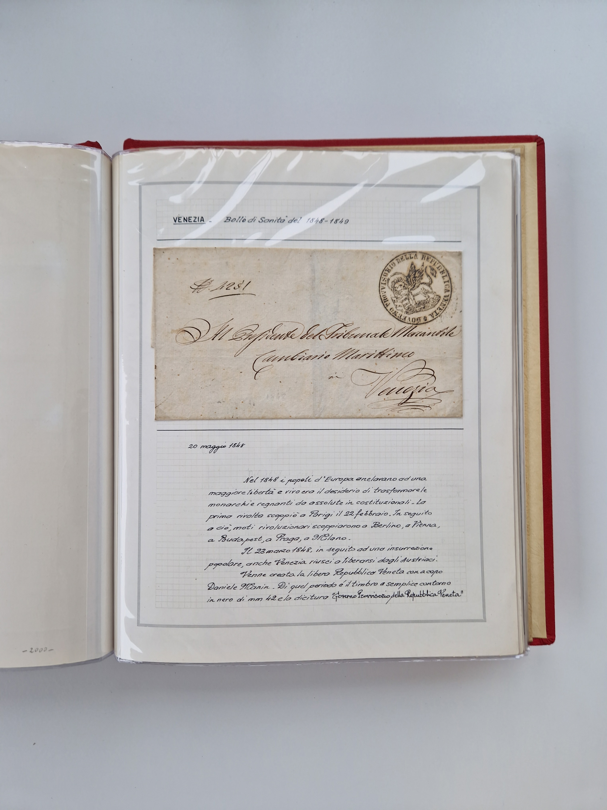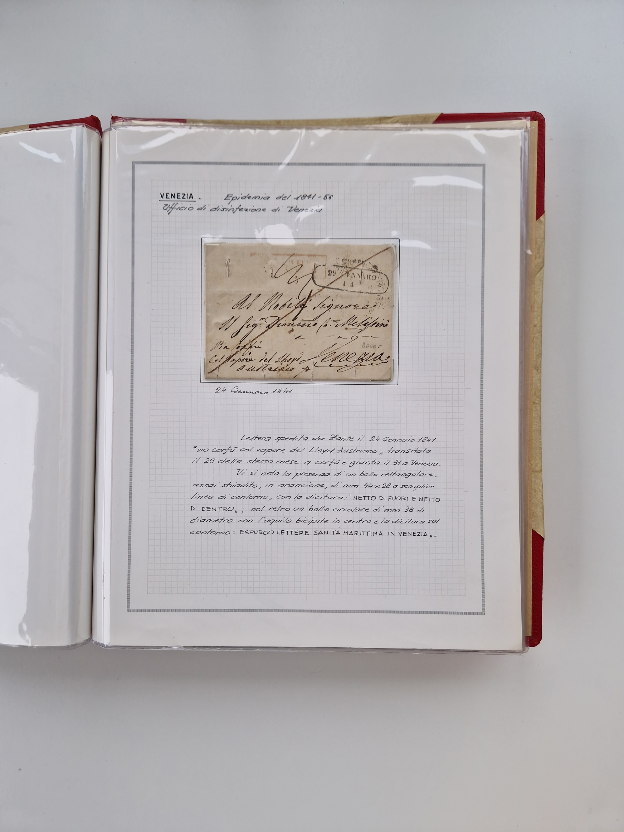 VENETIEN: 1549/1849, 40 Briefe und Dokumente, angefangen mit 4 frühen Briefen aus 1549 bis 1606, dabei u.a. ein Brief aus 1549 mit Anweisungen, die nach den Pestepidemien durchgeführt werden sollen, mit Trockensiegel Nr. 1 nach dem AISP-Katalog, (dieses nur von ca. 1549-1601 in Verwendung), sowie Brief aus 1606 von Alexandria nach Venedig, sauber beschrieben in drei Alben