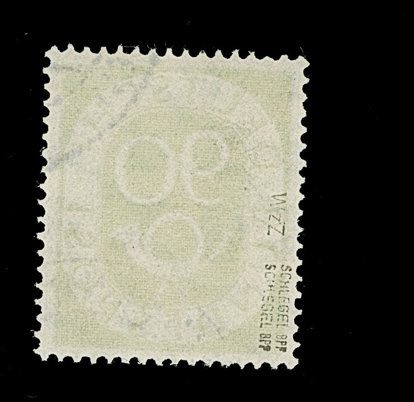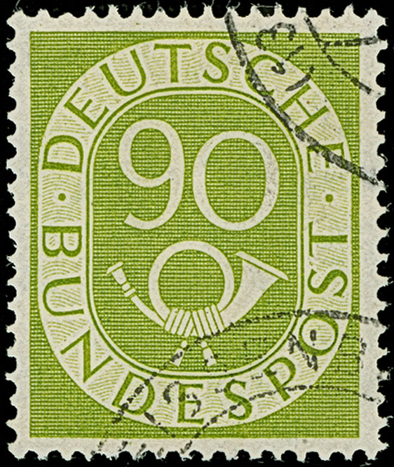 Posthorn 90 Pfg. mit Wasserzeichen 4Z, sauber gestempelt und in einwandfreier Erhaltung. Eine seltene Marke, doppelt signiert Schlegel BPP