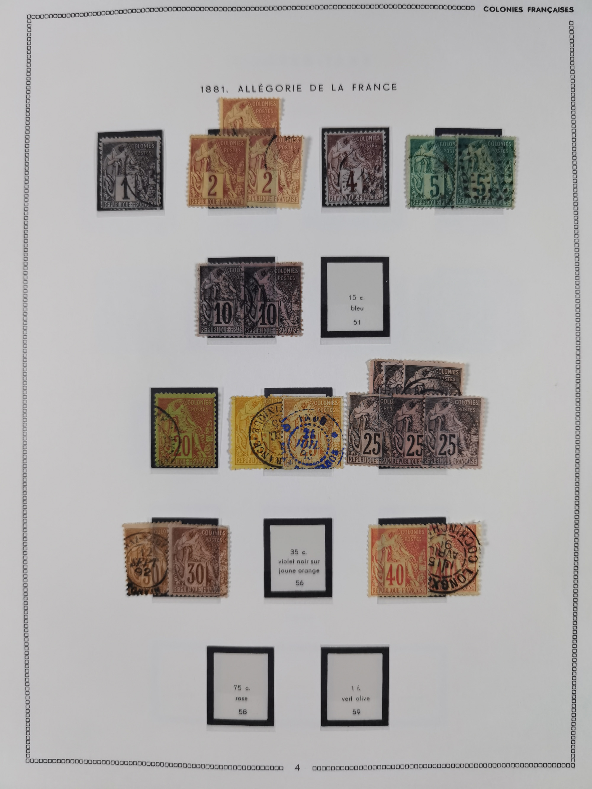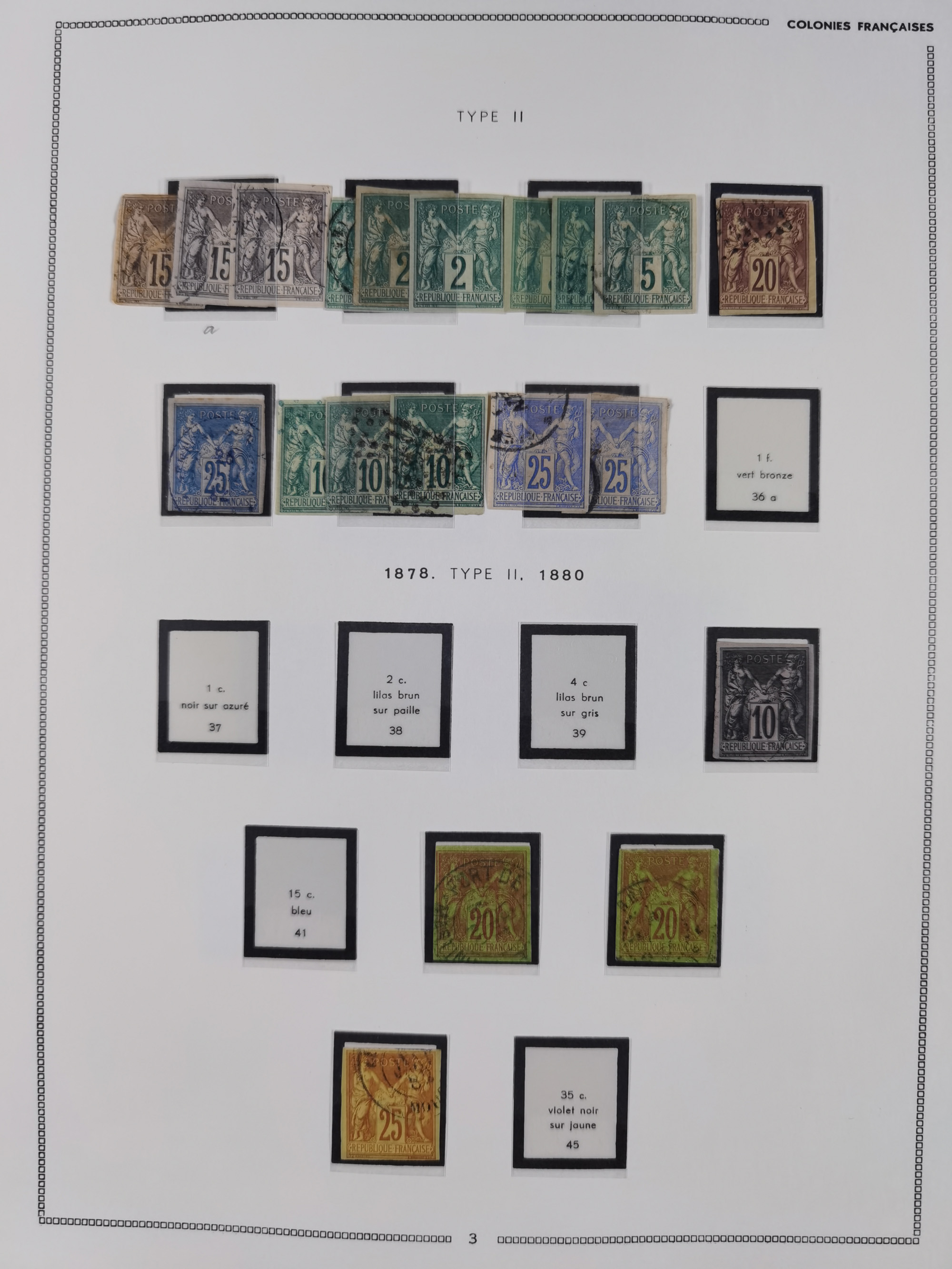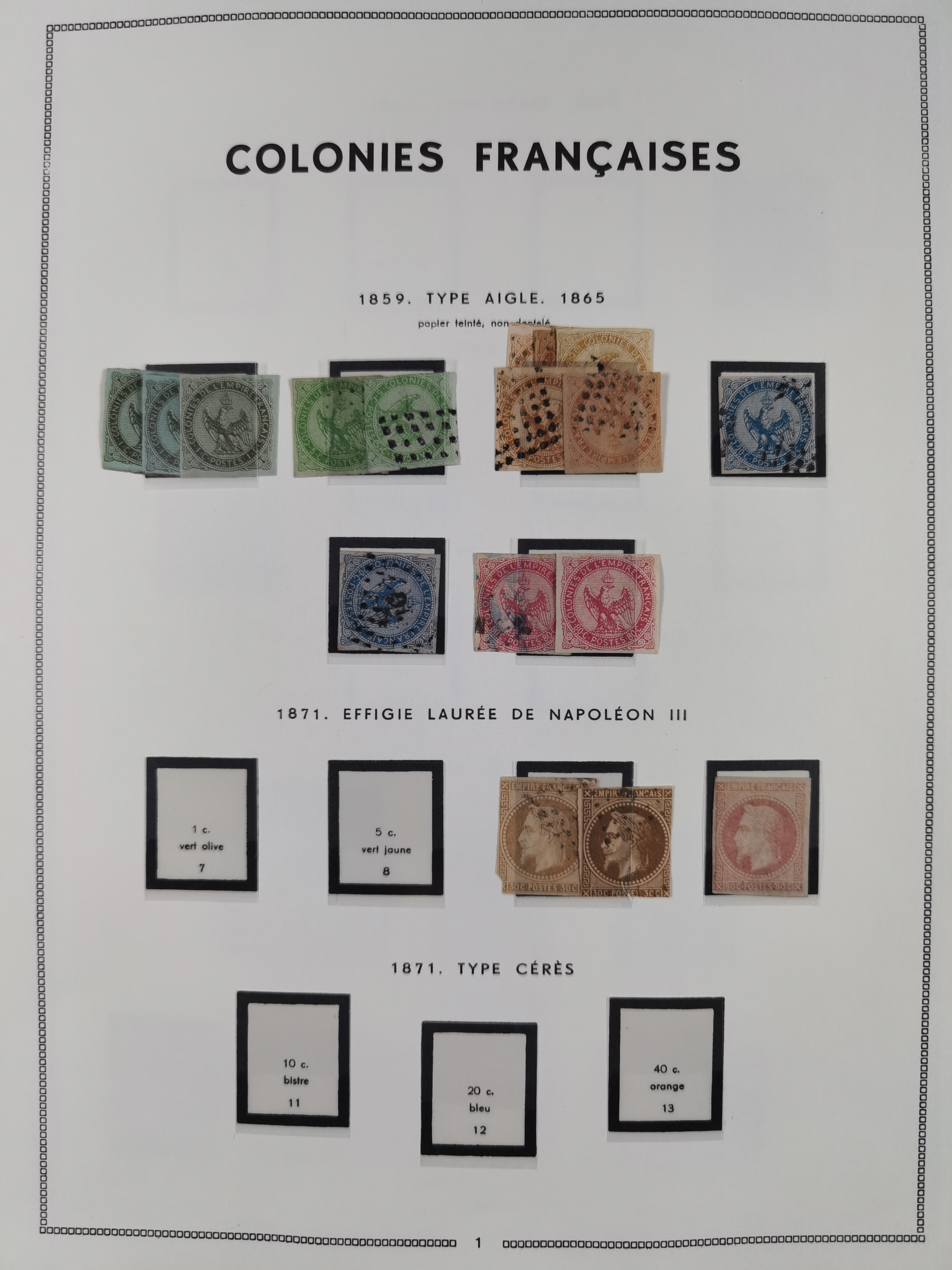 1872/1946 (ca.), mint never hinged/unused and used collection, incl. Forerunners and General Issues, with some duplicates, multiples, gutter pairs and other specialities, some better items throughout with Cérès 80 c. imperforate pair used with dotted “INDE” (Mi.-Nr. 23, signed A. Brun), fine group of Obock with some bisected on pieces, a selection of GC 5080 (Alexandria) cancels on 5 Francs empire and 40 c. Bordeaux, fine section of Reunion, St Pierre & Miquelon, etc., some Fournier forgeries noted, a few values signed A. Brun. An interesting assembly, except for the occasional fault in overall good condition