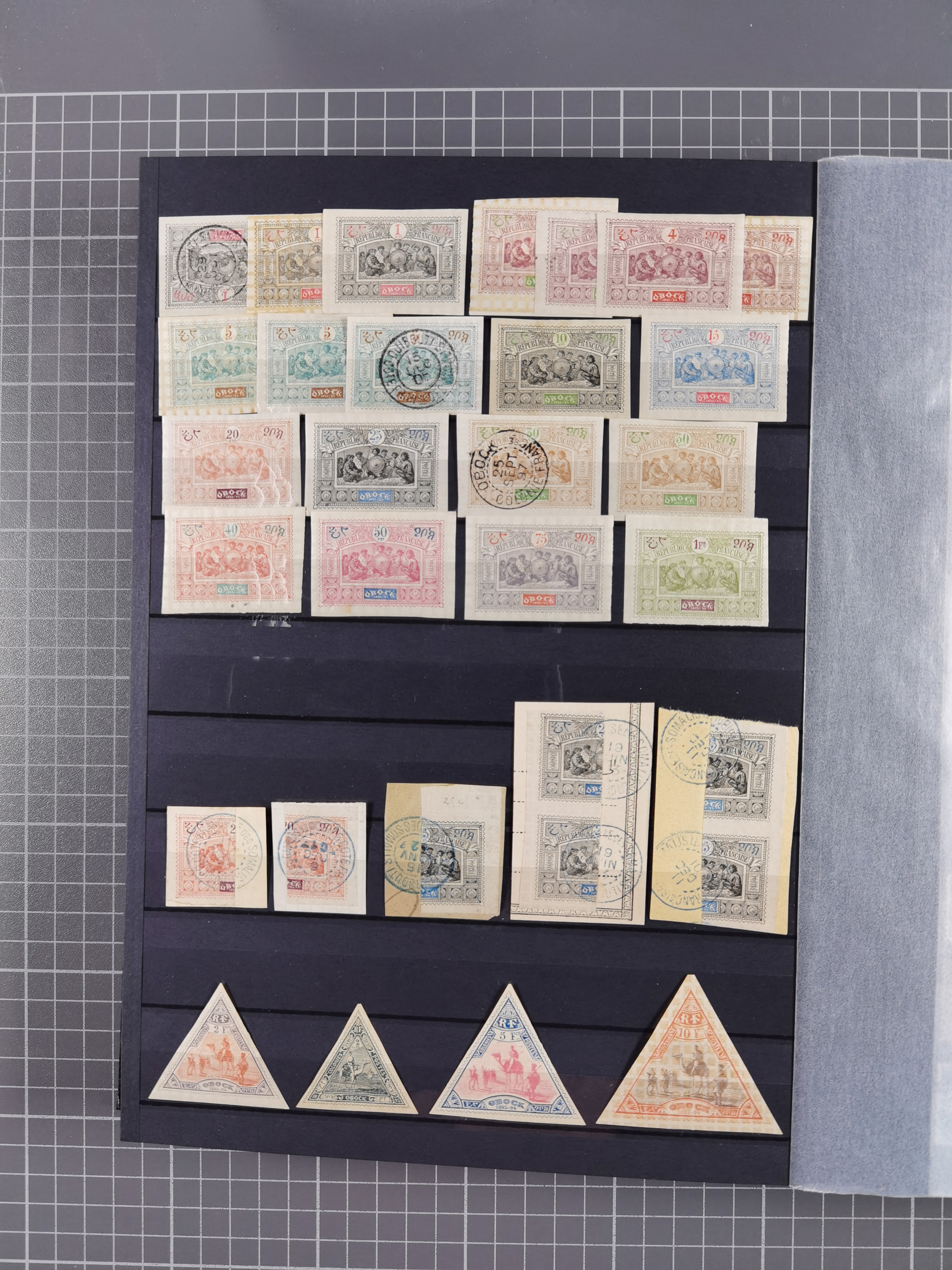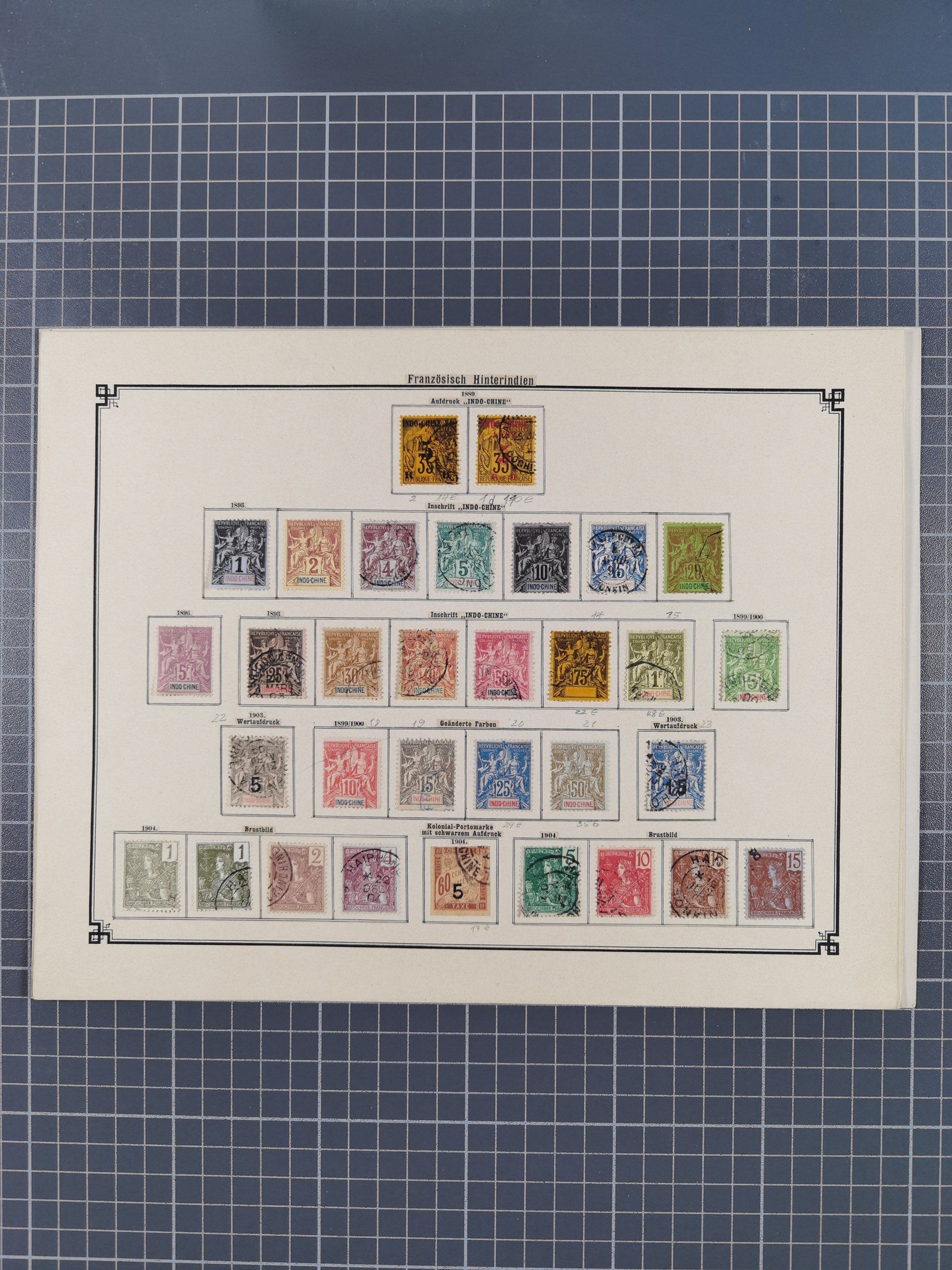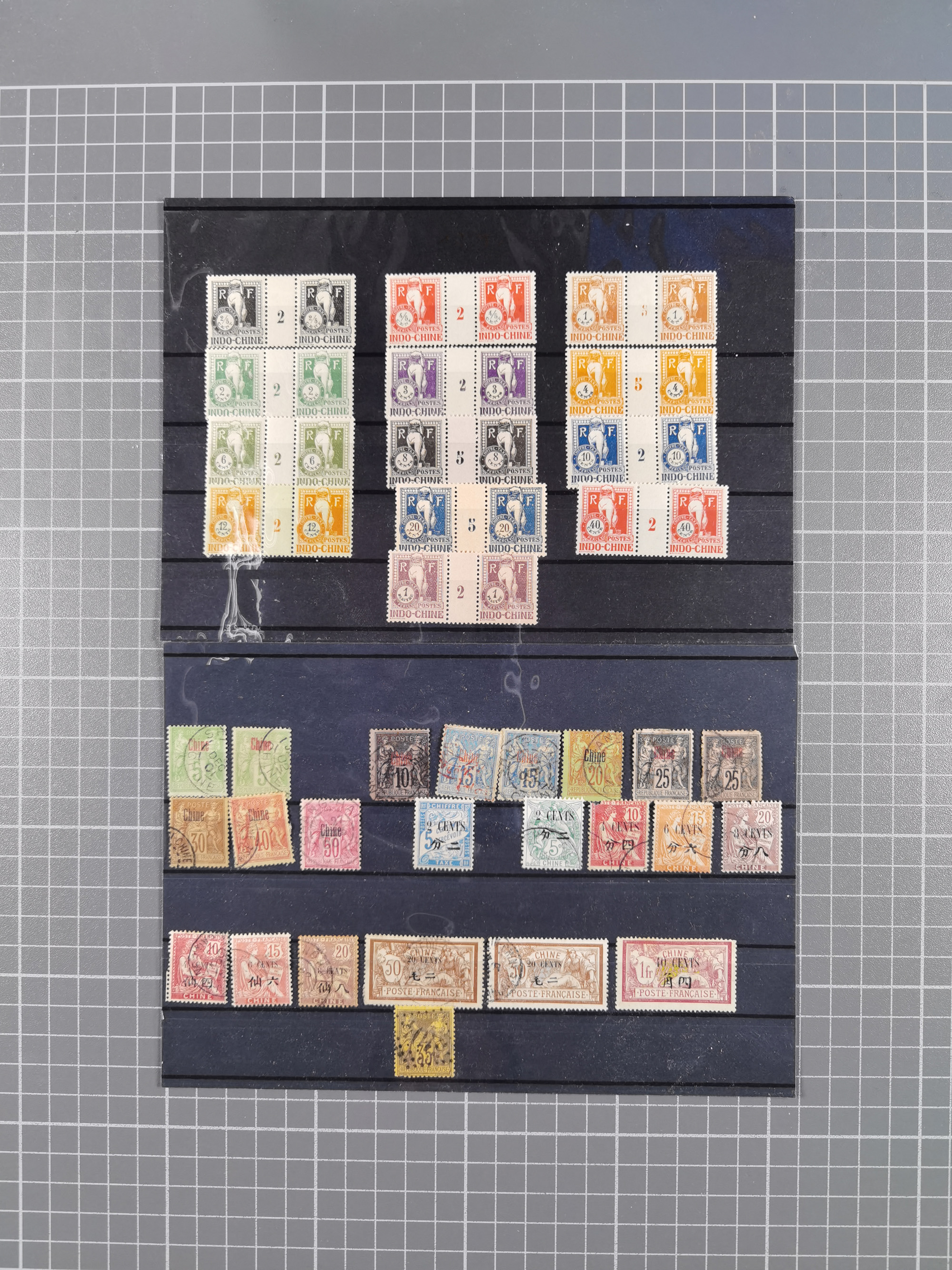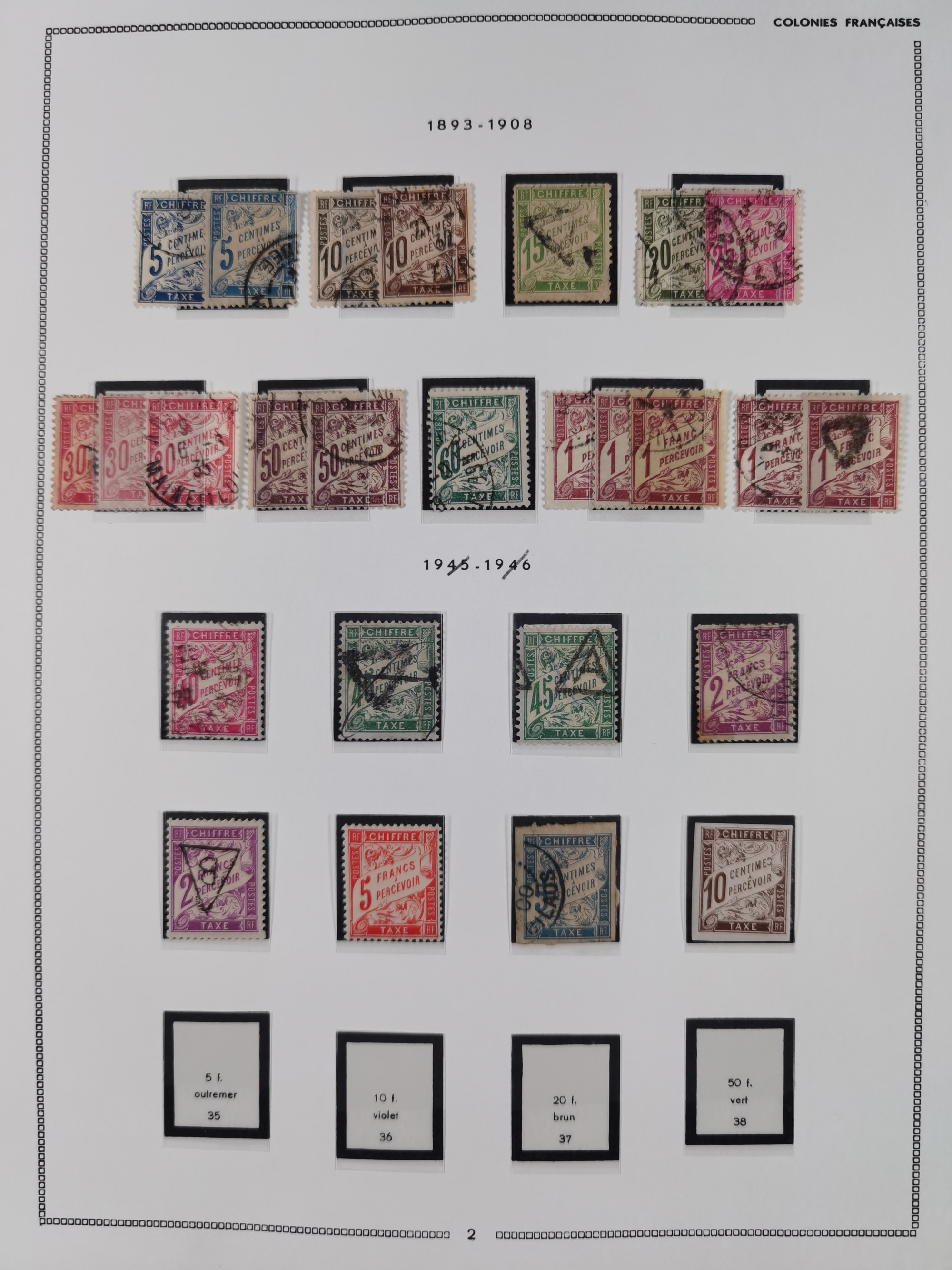 1872/1946 (ca.), mint never hinged/unused and used collection, incl. Forerunners and General Issues, with some duplicates, multiples, gutter pairs and other specialities, some better items throughout with Cérès 80 c. imperforate pair used with dotted “INDE” (Mi.-Nr. 23, signed A. Brun), fine group of Obock with some bisected on pieces, a selection of GC 5080 (Alexandria) cancels on 5 Francs empire and 40 c. Bordeaux, fine section of Reunion, St Pierre & Miquelon, etc., some Fournier forgeries noted, a few values signed A. Brun. An interesting assembly, except for the occasional fault in overall good condition