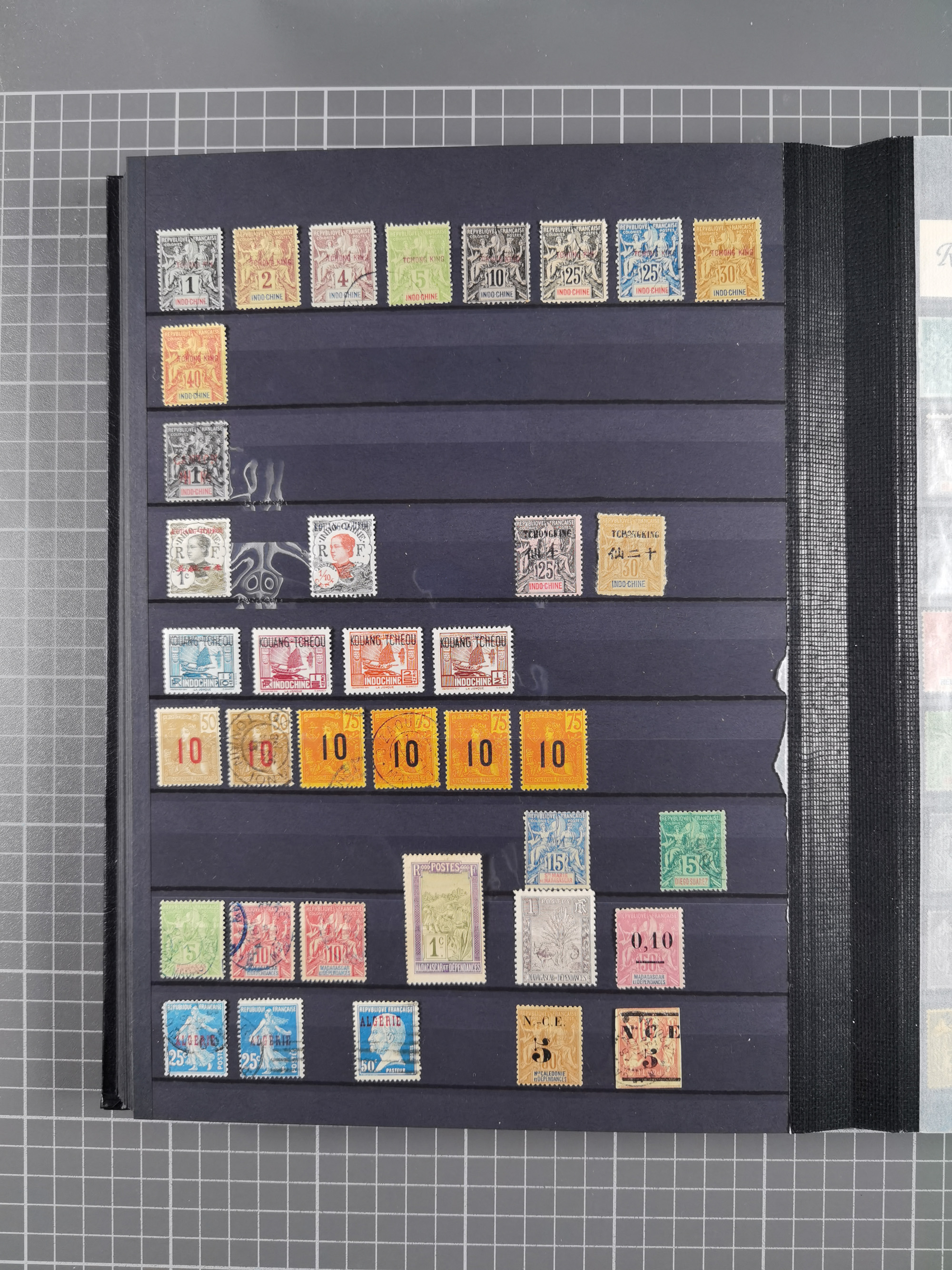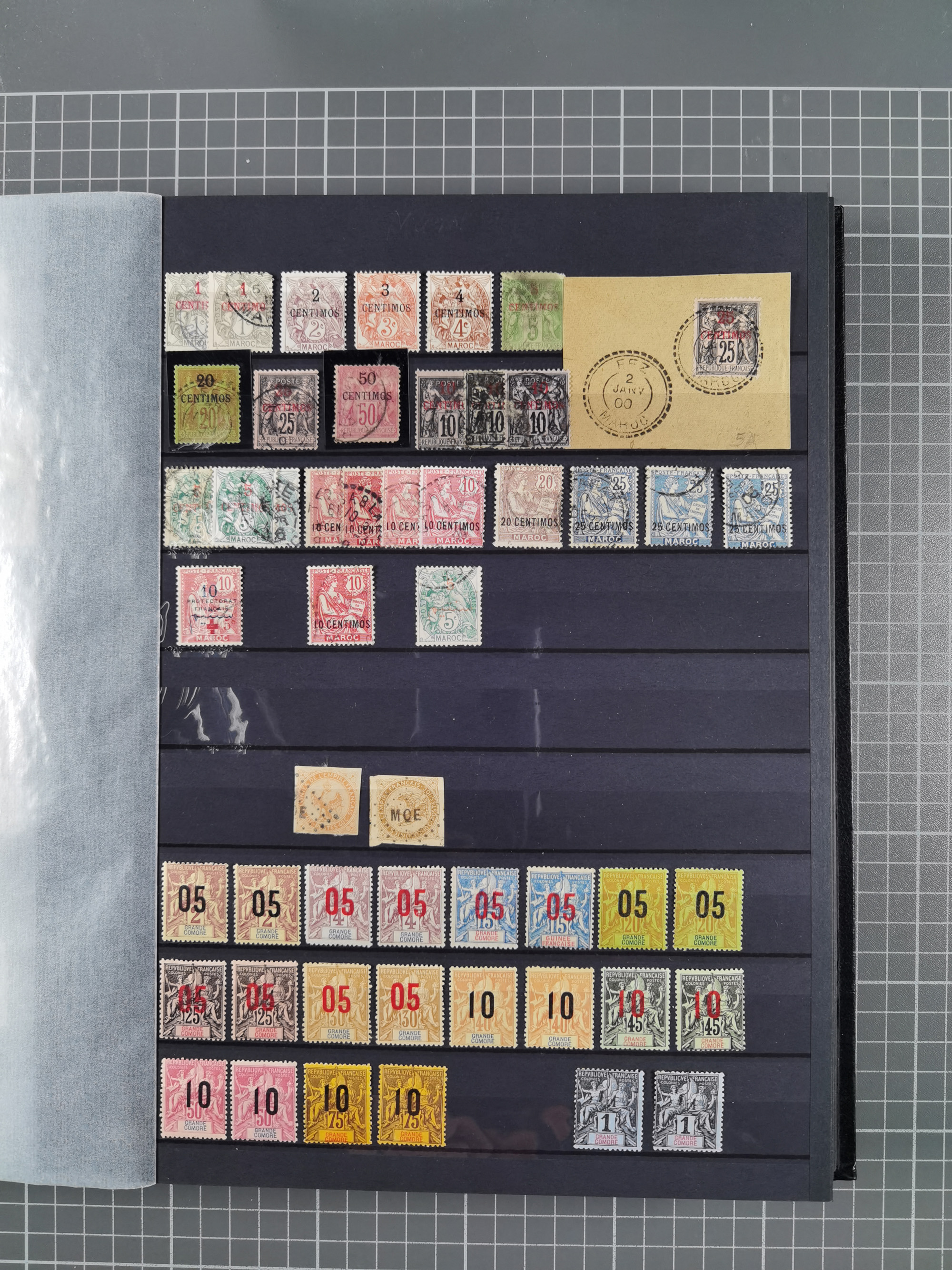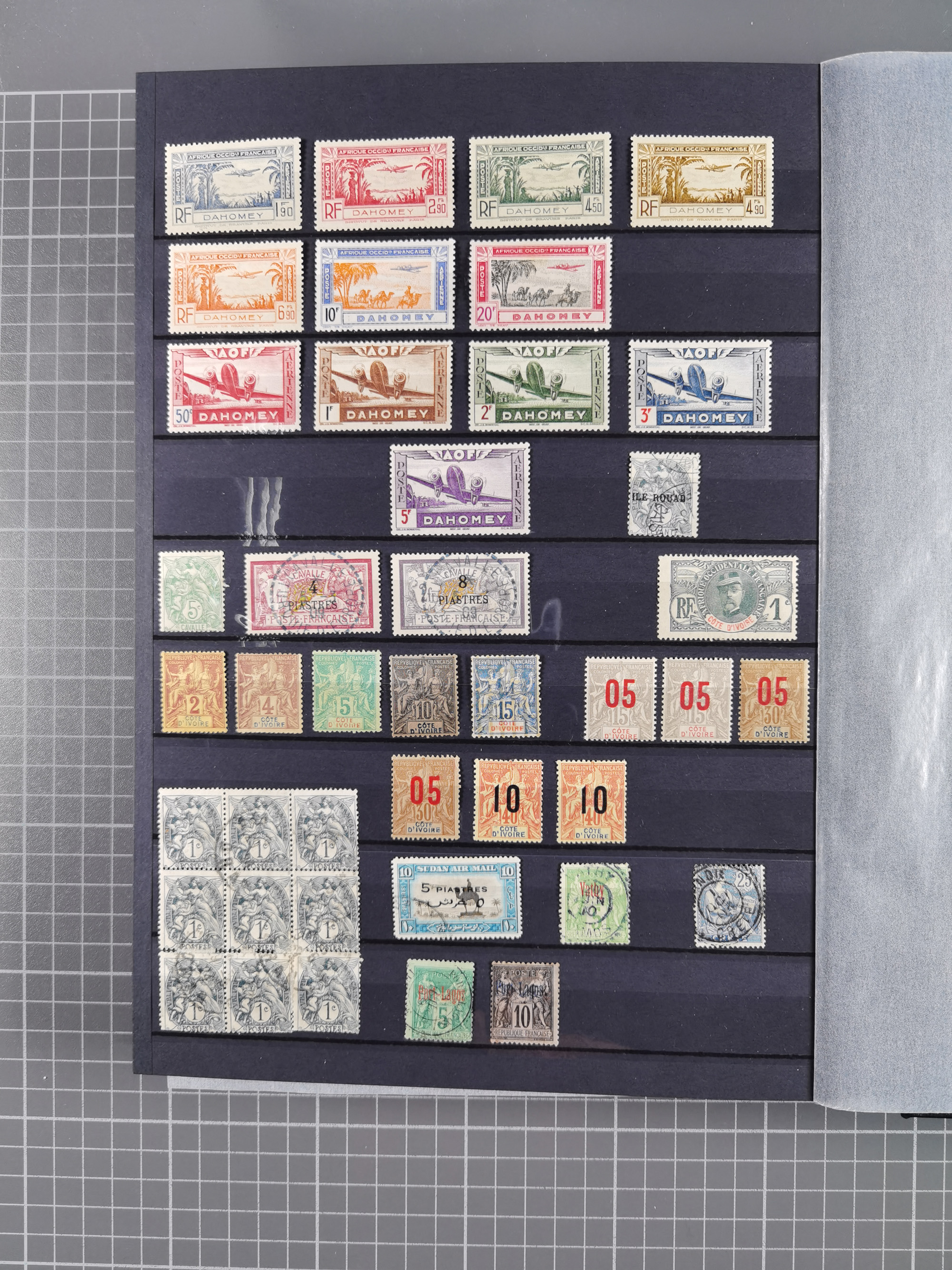 1897/75, Collection on 24 Scott album leaves, unused and mnh, starting early overprinted set 1912, including good part air mail issues, S/S and postage due, additional some Mayotte, Anjouan and Moheli.