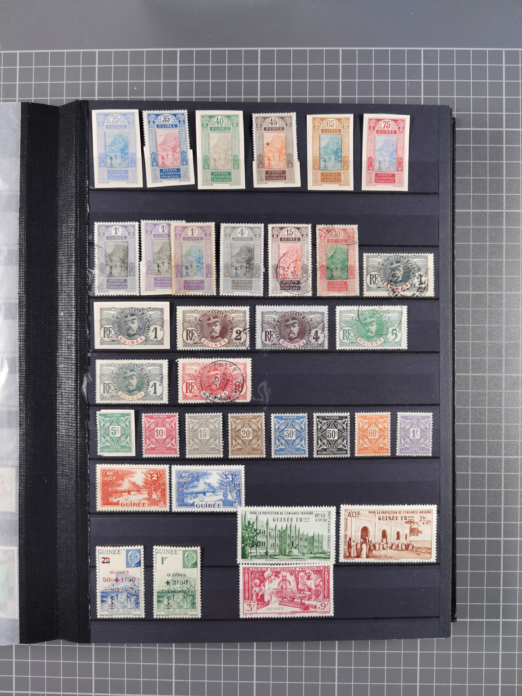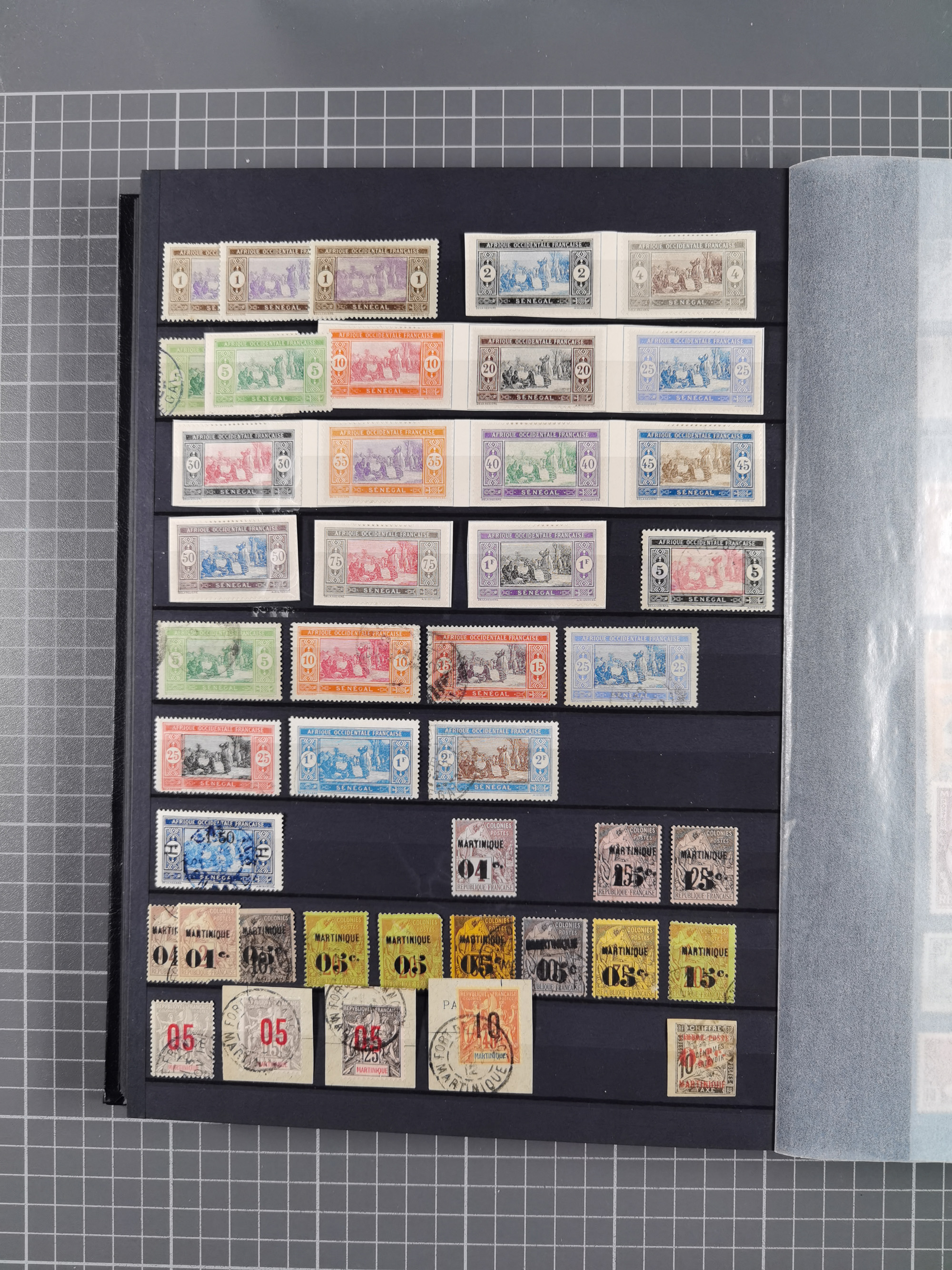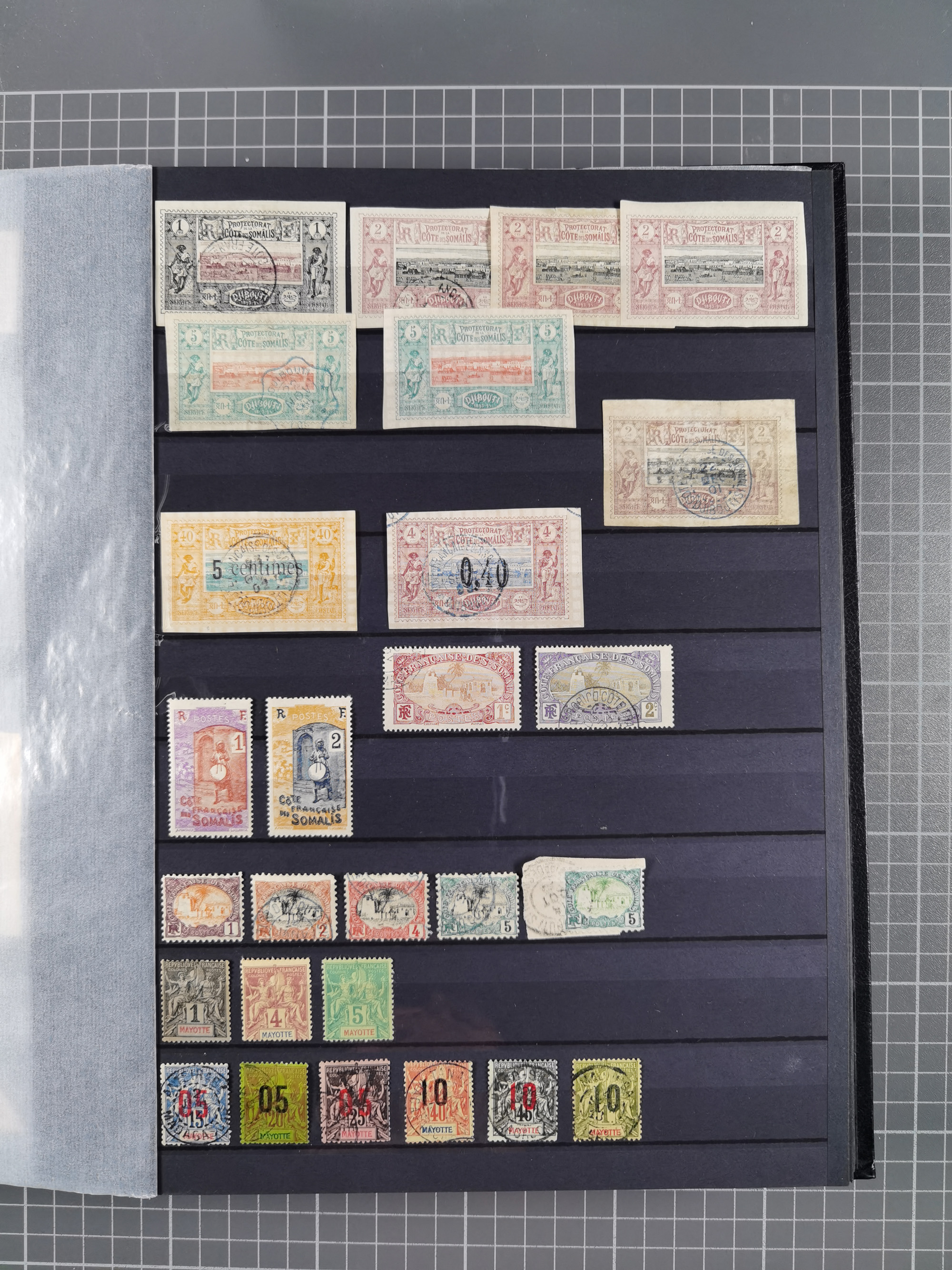 1897/75, Collection on 24 Scott album leaves, unused and mnh, starting early overprinted set 1912, including good part air mail issues, S/S and postage due, additional some Mayotte, Anjouan and Moheli.