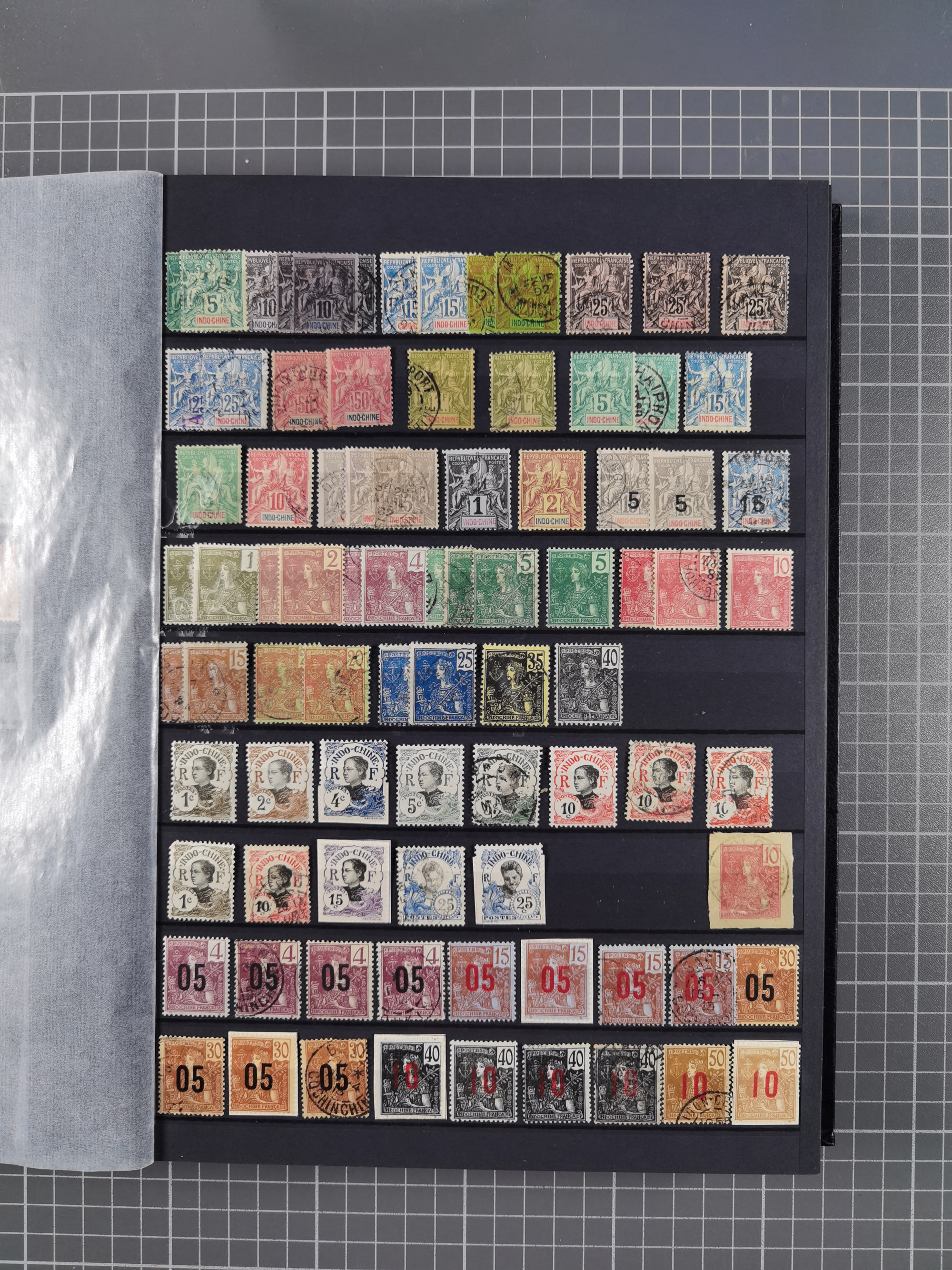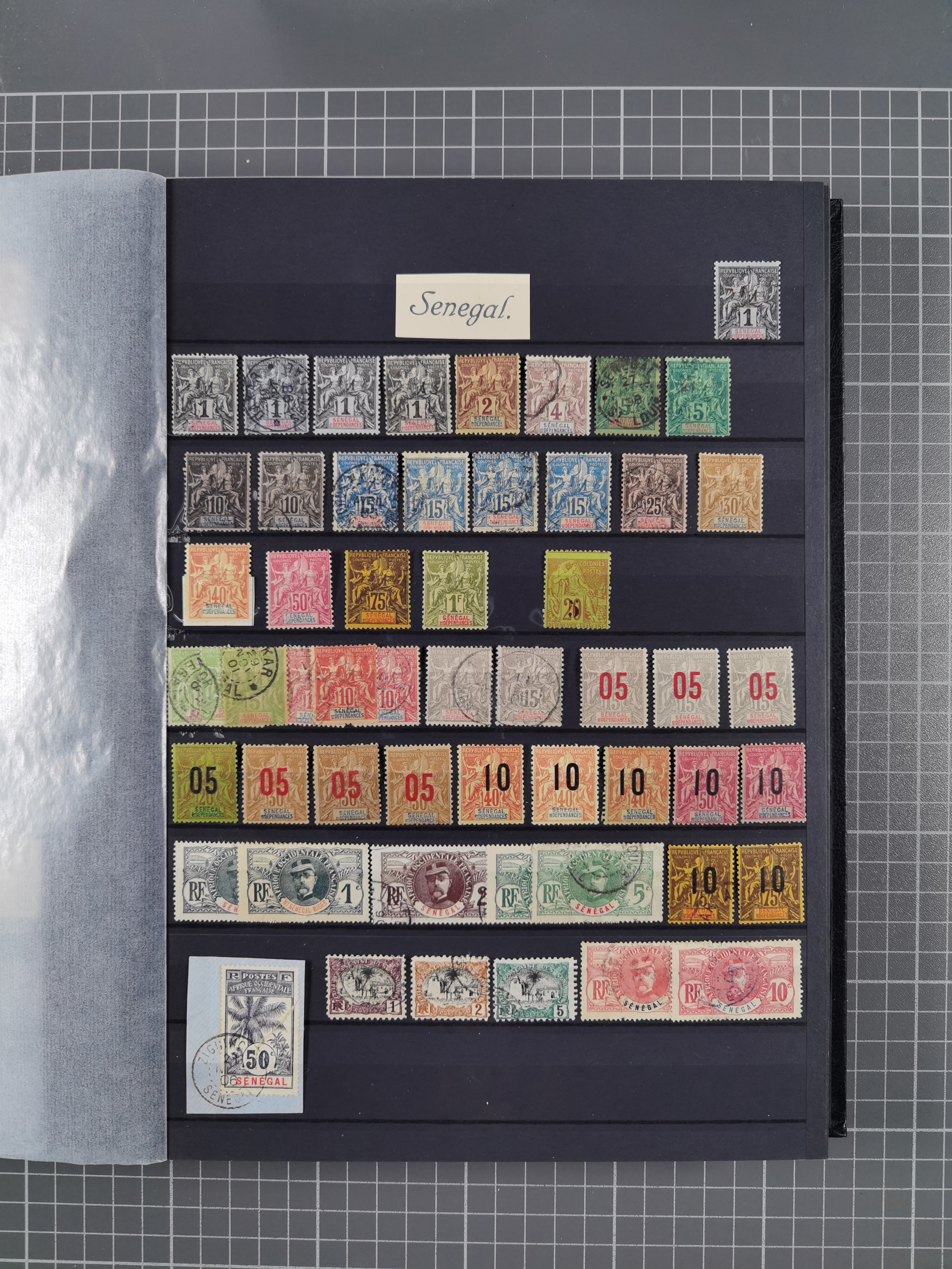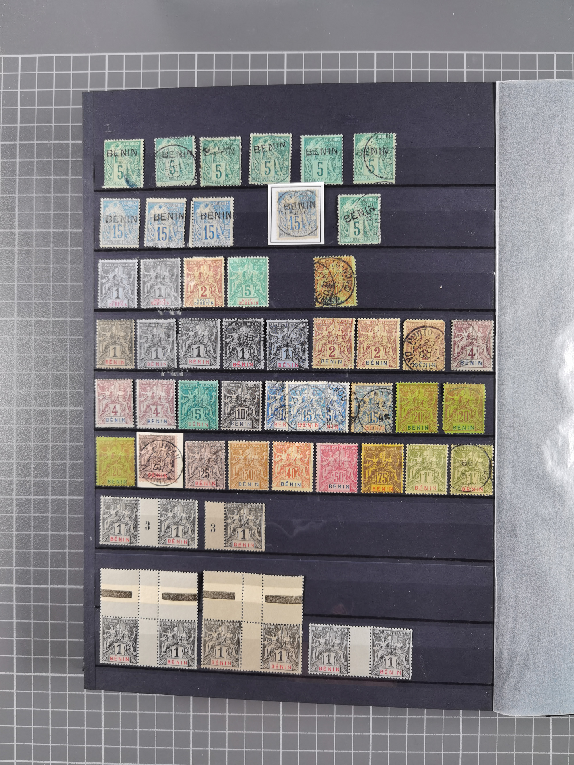 1890/97, valuable used collection, starting with a nice section of forerunners with Sage 1 Fr. block of six (few faults), Sage 5 fr. two singles and horizontal pair, 1897 overprints issue with a wide variety of types including many rare and better throughout like 1897 Mi.-Nr. 19 (x6), together with some scarce gutter pairs, many signed Köhler, Roumet, Scheller, Calves or A. Brun, an attractive lot with high catalogue value