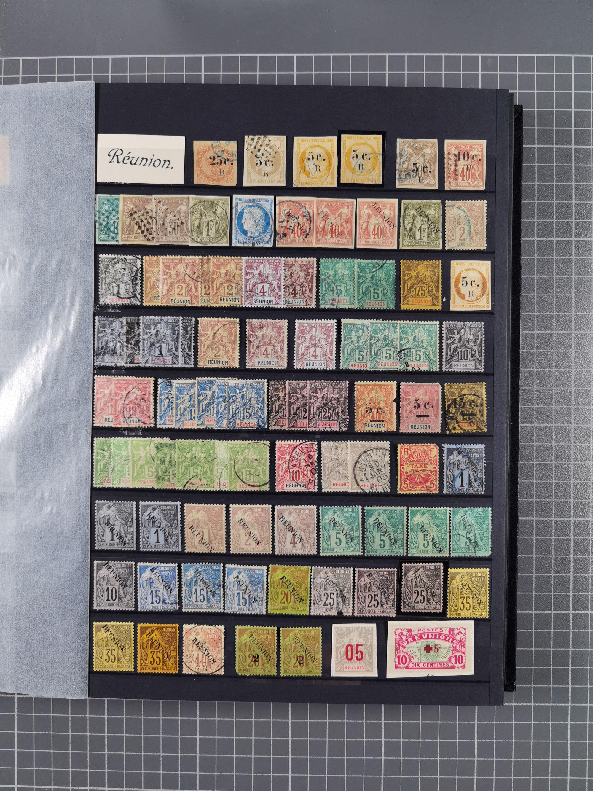 1849/1980 (ca.), group of unused and used mostly up to the Sage issue, including General Colonies, plenty of duplicates with Mi.-Nr. 1 used (x3), 3 used (x16), 4 used (x14), 16 used (x13), also proof, a few forgeries noted; except for the occasional fault, overall in very good condition, in one stockbook
