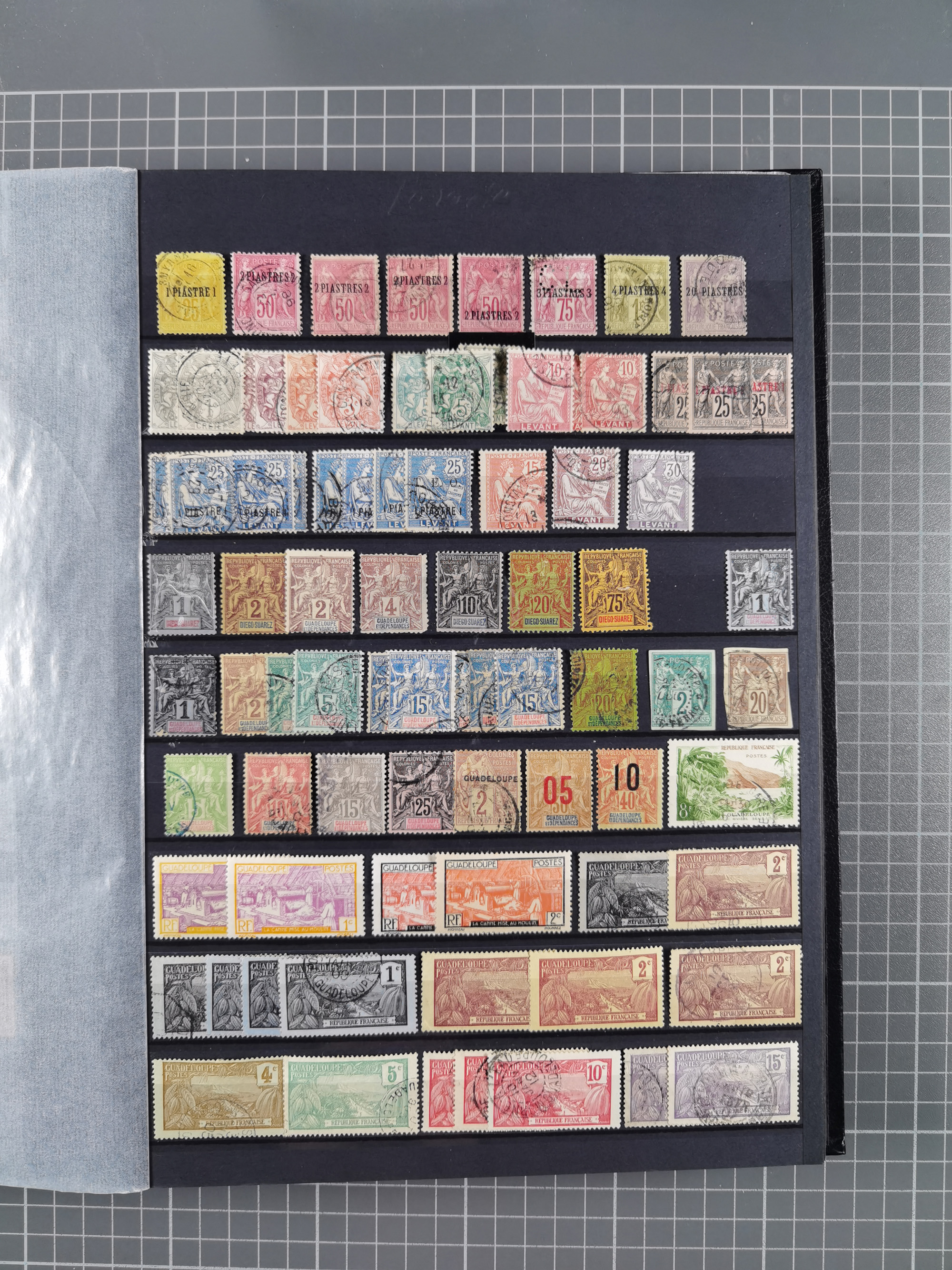 1856/1940 (ca.), over 120 covers and cards, strength before the 1930s with many multiple and mixed frankings, usages and destinations, noted Senegal with a fine group including Dubois 5c. (x2), 15 c. and 25 c. with blue octogonal “GOREE 23 12 84” to mourning envelope to Brest, New Caledonia with Dubois 25 c. strip of three with “Nlle CALEDONIE NOUMEA 19 AVRIL 89” to envelope to France, fine section of French offices in Asia with large violet circular “CORPS D´OCCUPATION DE CHINE” on franked postcard from “SHANGHAI 22 3 02” to Gibeon in German South West Africa, etc., somewhat mixed condition