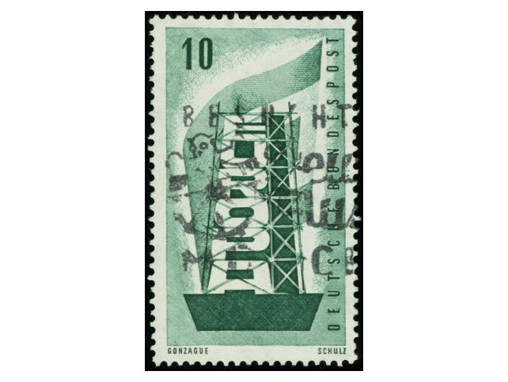 1956, Europa 10 Pfg. mit seitenverkehrtem Wasserzeichen, sauber mit Maschinenstempel entwertet, kleine Zahnverkürzungen, sonst tadellos, Fotoattest Schlegel BPP
