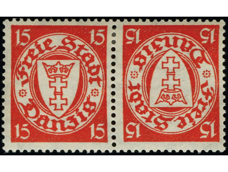 1925, Staatswappen 15 Pfg. orangrot, waagerechtes Kehrdruckpaar, sauber ungebraucht, tadellos, u.a. sign. Kniep BPP
