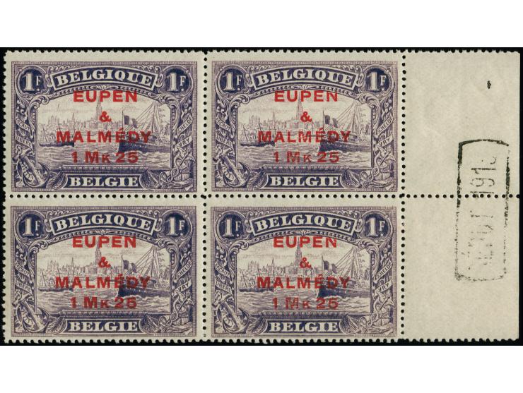 1 Fr., gez. 14 ¾-15, Viererblock vom rechten Bogenrand mit Ra. "Depot 1918" im Rand, postfrisch, tadellos