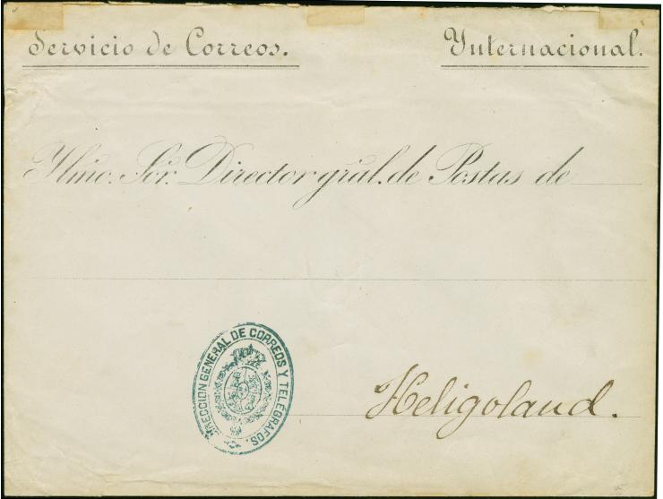1875, großformatiger Umschlag mit Absenderstempel “DIRECCION GENERAL DE CORREOS Y TELEGRAFOS” nach Helgoland, ein interessanter Brief in guter Erhaltung