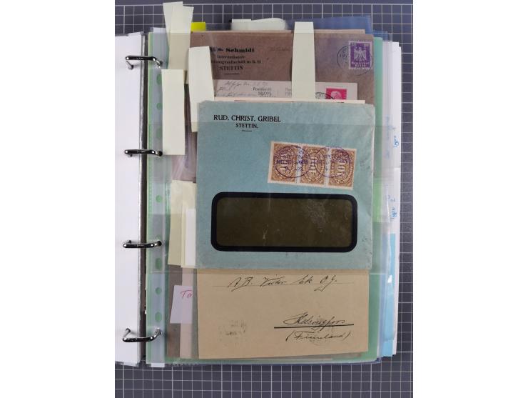 1923/35, kleine Sammlung “DSP mit Bezug zu Stettin mit Briefen, Karten und GSK, meist Sammlerpost mit u.a. violettem Stempel “DSP STETTIN-HELSINGFORS” auf Fensterbrief 1923, vier Briefe 1929/32 mit Stempel “DSP STETTIN-LENINGRAD” und fünf Belege mit Stempel “DSP STETTIN-REVAL”, meist in guter Erhaltung. Dazu Forschungsarbeiten mit Texten und Kopien, ex Steinmeyer