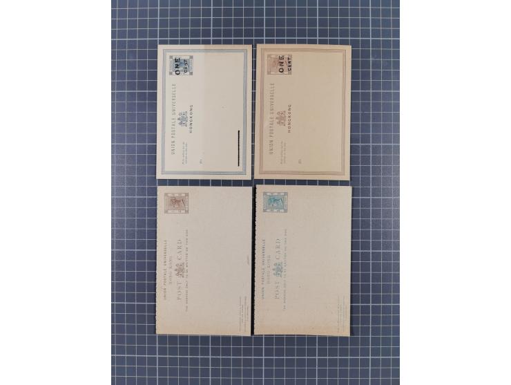 1881, Nine different postal stationery cards including ´ONE/CENT´ surcharge on 3 c. brown and 4 c. grey, two answering cards, all unused, few tiny toned, mostly fine