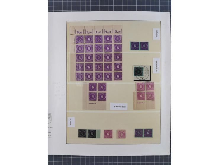 1945/46, meist postfrische Sammlung mit vielen Besonderheiten, dabei einseitig ungezähnte und ungezähnte Werte, Farben und Druckereizeichen, etc., dabei u.a. Mi.-Nr. 19xUs im 4er-Streifen, 24Us im Seitenrandpaar, 24U, 25 mit markanter Quetschfalte, 26a und b im Eckrand-4er Block sign. Kramp BPP, ferner über 30 Briefe mit u.a. Briefvorderseite aus dem Stettiner Zipfel, etc., teils signiert, im Album