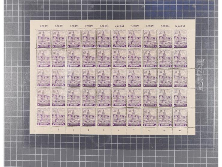 1946, Leipziger Messe 6 Pfg., schwärzlichpurpurviolett, auf Papier ohne Wasserzeichen mit steil fallender Papierstreifung, kompletter Bogen a 50 Marken, postfrisch, tadellos. Unsigniert, Fotoattest Schulz BPP (2024) (Mi. 12.500,-)