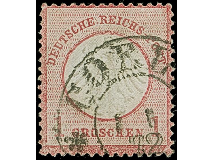 “COELN** 1.1.72” (Spalink 4-1N1) klar auf loser Marke kleiner Schild 1 Gr. rötlichkarmin. Die farbfrische Marke ist deutlich geprägt, üblich gezähnt und bis auf eine kleine helle Stelle in einwandfreier Erhaltung. Ein dekoratives Exemplar mit seltenem Ersttagsstempel, Fotoattest Krug BPP (2012)