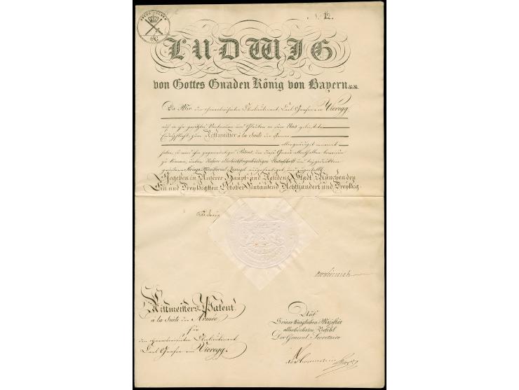 1830, Ludwig I., König von Bayern, eigenhändige Unterschrift auf Rittmeister-Patent für den Grafen von Vieregg