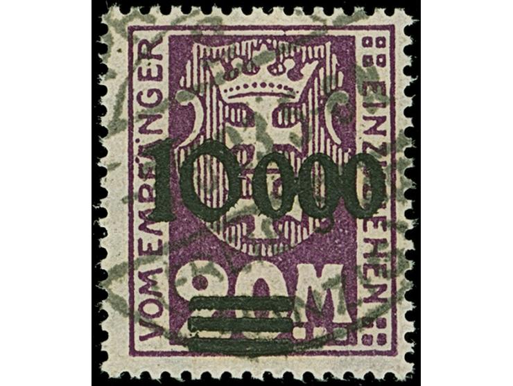 1923, 10000 auf 20 M. mit rußigem Aufdruck, sauber mit zeitgerechter Entwertung “PRAUST 2 FSD 3.10.23”, in einwandfreier Erhaltung, sign. Schüler und Infla Berlin sowie Fotoattest Gruber BPP (2025)