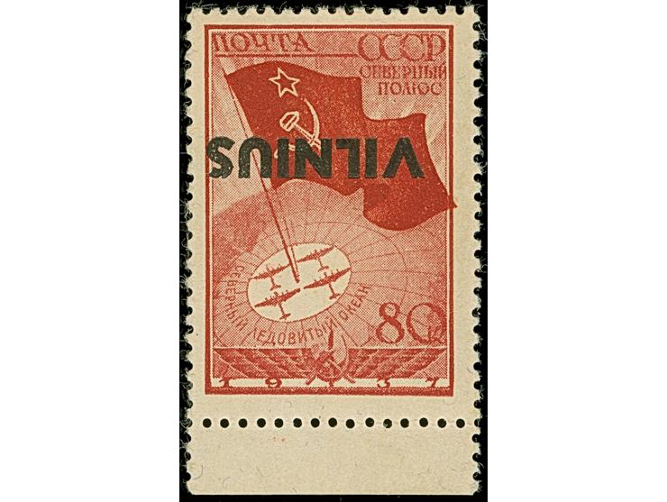 Nordpol 80K., Unterrandstück mit kopfstehendem Aufdruck mit Aufdruckfehler “Kerbe im oberen Bogen des S von VILNIUS”, postfrisch, tadellos, eine der ganz großen Seltenheiten, Auflage lediglich 2 Stück, u.a. sign. Vossen sowie Fotoattest Krischke BPP (1994)
