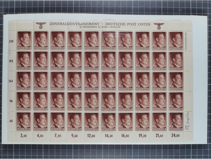1941, Hitler 2-48 Gr., postfrischer Bogensatz, überkomplett, dabei verschiedene Formnummern und Oberrand durchgezähnt bzw. nicht durchgezähnt, insgesamt 17 Bogen (Mi.-Nr. 71-82)