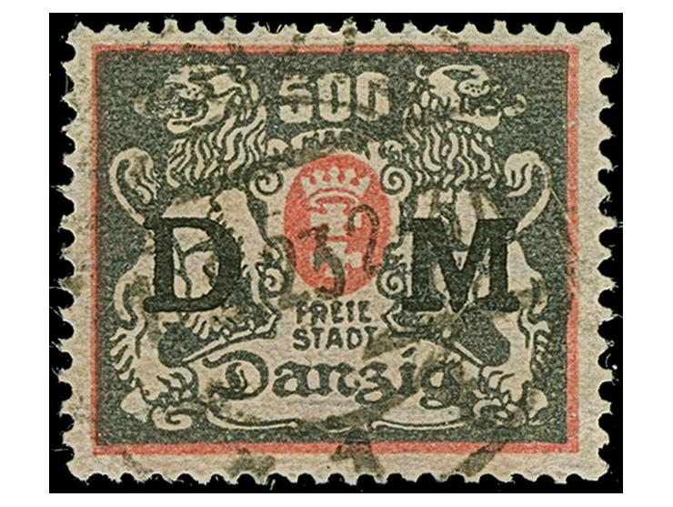 1923, Wappen 500 M. mit zeitgerecher Entwertung "DANZIG 1t/1.8.23", Fotoattest Gruber BPP (2025)