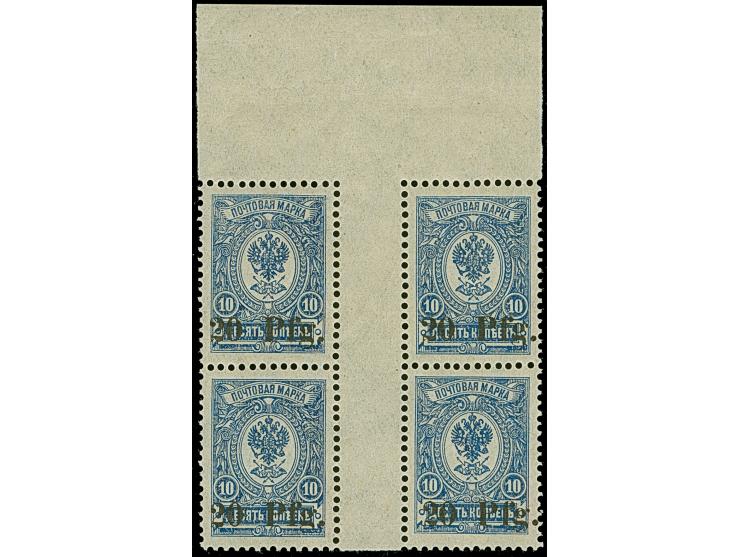 1918, 20 Pf. auf 10 K. lebhaftblau, Oberrand-Viererblock mit zwei waagerechten Zwischenstegpaaren, postfrisch, tadellos, sehr selten, sign. Vossen