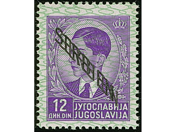 1941, 12 Dinar dunkelpurpurviolett, mit doppeltem Aufdruck, postfrisch, tadellos, sign. E. Diena