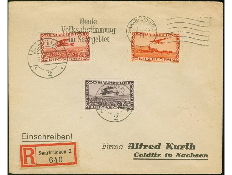 1928, Flugpost, Nachauflage 50 C. mit Plattenfehler „VAUGIRARD unten abgeschliffen“ auf um 0,50 Fr. überfrankiertem R-Brief mit Flugpost 60 C. und 1 Fr. von „SAARBRÜCKEN 13.1.35“ nach Golditz mit Ankunftsstempel (Fehldatum), Umschlag leichte Randspuren, Marken tadellos, selten, Fotoattest Geigle BPP (2011)  ex Axel Kruse