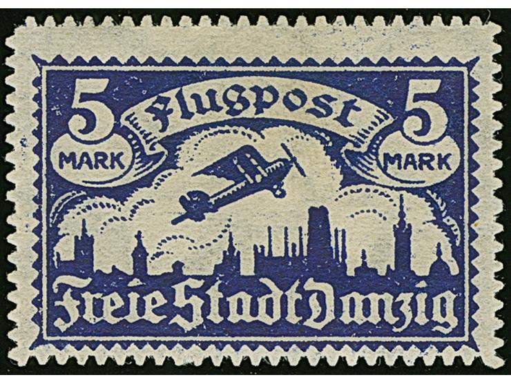 1921, Flugpost 5 Mark, liegendes Wasserzeichen, sauber ungebraucht, herstellungsbedingte Papierfalte, tadellos, Fotoattest Soecknick BPP (2012)
