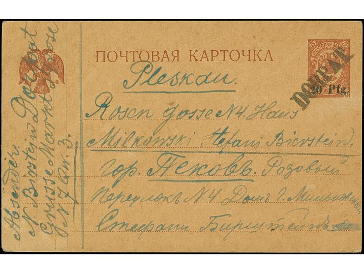 1918, Ganzsachenkarte 20 Pfennig auf 5 Kopeken, sauber mit L1 “DORPAT” ach Pleskau, leichte Beförderungsspuren