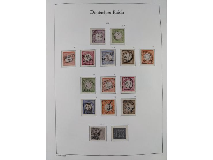 1872/1932, gestempelte Sammlung inkl. Dienstmarken mit vielen besseren und kpl. Ausgaben, Farben, Wasserzeichen-Abarten, Typen und weiteren Besonderheiten, dabei u.a. Mi.-Nr. 24 mit kleinem Plattenfehler auf Postkarte (gereinigt, FA Sommer), Mi.-Nr. 27b (doppelt sign. Sommer BPP, Mi.-Nr. 24 (repariert, FB Hennies BPP), drei Werte Mi.-Nr. 66, Mi.-Nr. IV auf Sonderkarte, Mi.-Nr. 331a (FA Weinbuch BPP), Mi.-Nr. 398 (sign. Pfenninger), Zeppelin-Ausgaben kpl., Block 1 mit Sonderstempel, DI auf Brief und D65 auf Briefstück (sign. Infla Berlin und Peschl). Vieles signiert bzw. mit FB und Fotoattesten, sauber im Vordruckalbun