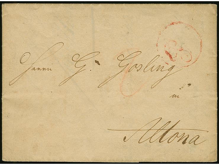 1751/1853, 3 Vorphila-Briefe: L1 "HAMBOURG" auf frühem Brief, Roter Fußpoststempel auf Brief von Bremen nach Altona und Brief mit Stempel der Bahnhofs-Expedition, 1853.