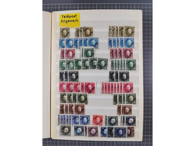 1850/1916 (ca.), Stempelsammlung auf losen Marken nach Orten geordnet, dazu Lombardei Venetien, Feldpost und Levante ungebrauchter und gestempelter Bestand mit vielen Doubletten, sauber in 7 Steckbüchern