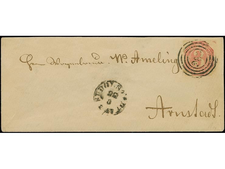 Ganzsachen-Ausschnitt 3 Kr. rosa, vollrandig viereckig geschnitten, mit Nr. “288” auf kleinem Briefkuvert von Rudolstadt nach Arnstadt. Kurzbefund Sem BPP