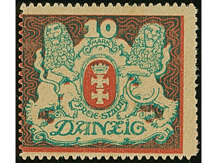 1921, Großes Staatswappen 10 M., Probedruck auf normalem Papier ohne Wasserzeichen, mit Rosettenunterdruck, in grün/rot/schwarz, postfrisch, einwandfrei, Fotobefund Gruber BPP (2010)