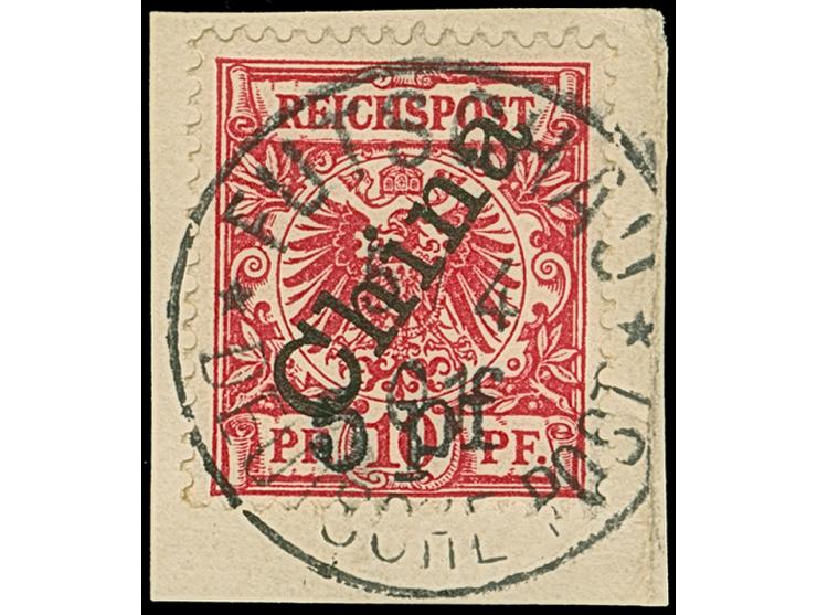 1900, Futschau Provisorium mit steilem Aufdruck 5 pf. auf 10 Pfg., sauber mit klarem EKr. “FUTSCHAU 5/4 01” auf Briefstück, tadellos, u.a. sign. Bothe BPP mit Fotoattest (1980)
