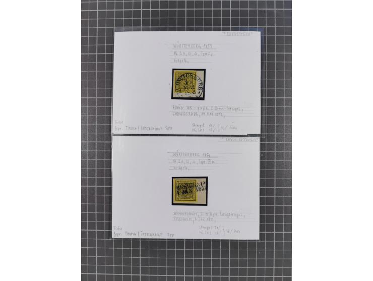 1820/1923, ungebrauchter und meist gestempelter, umfangreicher Sammlungsbestand von Marken und Briefen, jedes Stück mit ausführlicher Beschriftung auf Karten montiert, dabei Farben, Stempel, schöne Briefstücke, etc., auch einiges signiert BPP. In 6 kleinen Holzkisten.