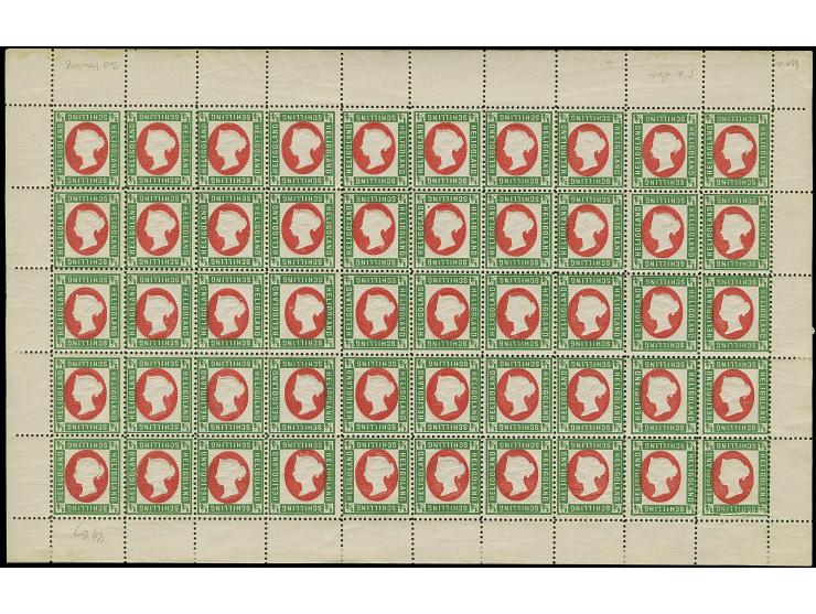 HAMBURGER: 1891/95, ¼ Schilling grün/karmin, der Fehldruck, mit kopfstehendem Medaillon, postfrisch, Falze im Rand, 5 Marken unten leichte Druckspur, sonst tadellos, sehr selten, Fotoattest Schulz BPP (1995)