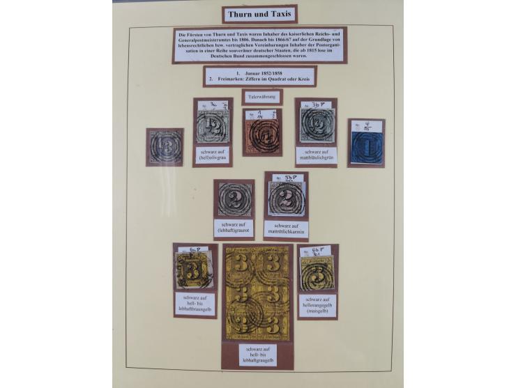 1852/66, gestempelte Sammlung mit besseren Marken, Farben und Einheiten. Dabei u.a. Mi.-Nr. 6a im senkrechten 6er-Block (FA Sem BPP), sehr breitrandige Mi.-Nr. 18 auf Briefstück (FA Sem BPP), reparierter waagerechter 5er-Streifen Mi.-Nr. 24 (FA Sem BPP), tadellose Mi.-Nr. 25 (FA Sem BPP), tadellose Mi.-Nr. 35 (FA Sem BPP) und tadellose Mi.-Nr. 45 und 46 (je FA Sem BPP). Bessere Marken und Farben sind fast alle signiert bzw. haben KB, FB oder Fotoatteste