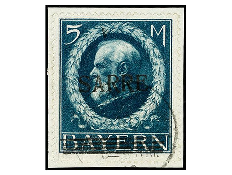 5 M. mit Aufdruckabart „obere Gitterlinie nach rechts verschoben“ (Feld 2, Teilauflage), auf Briefstück, tadellos, Fotoattest Burger BPP (2001) (Mi. 3.500,-)