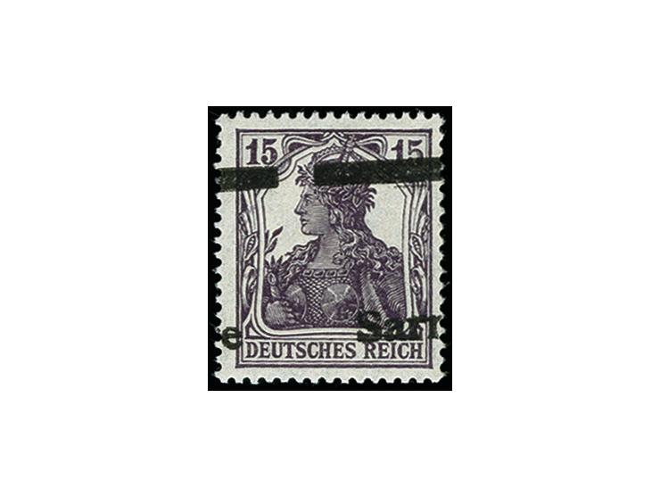 15 Pfg. schwärzlichgrauviolett mit Aufdruck "Text und Balken geteilt; á cheval", sauber ungebraucht, tadellos, sign. Burger BPP