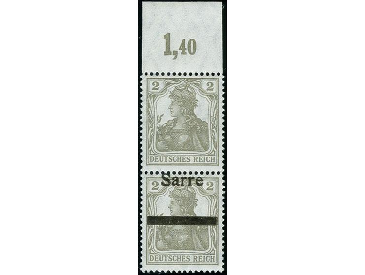 2 Pfg. senkrechtes Oberrandpaar, die obere Marke ohne Aufdruck, postfrisch, tadellos, selten, u.a. sign. Dub und Fotoatteste Burger BPP (2007) sowie Braun BPP (2016)